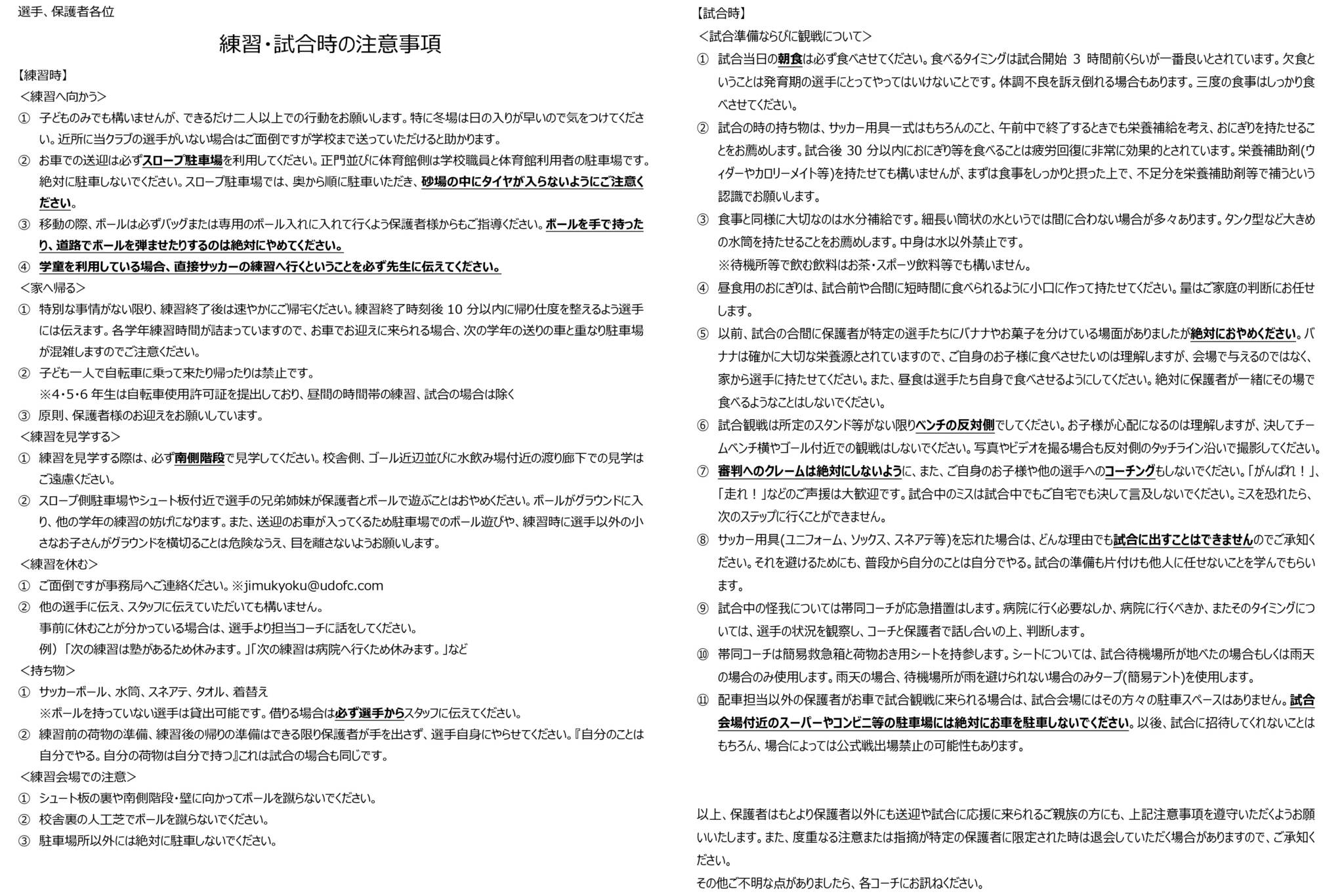 サッカーができることは当たり前ではありません。 練習会場や試合会場に送ってもらったり、迎えに来てもらったり、お弁当を作ってくれたりと、君達がサッカーをするためにお父さん・お母さんが頑張っています。 「ありがとう」を伝えてください。