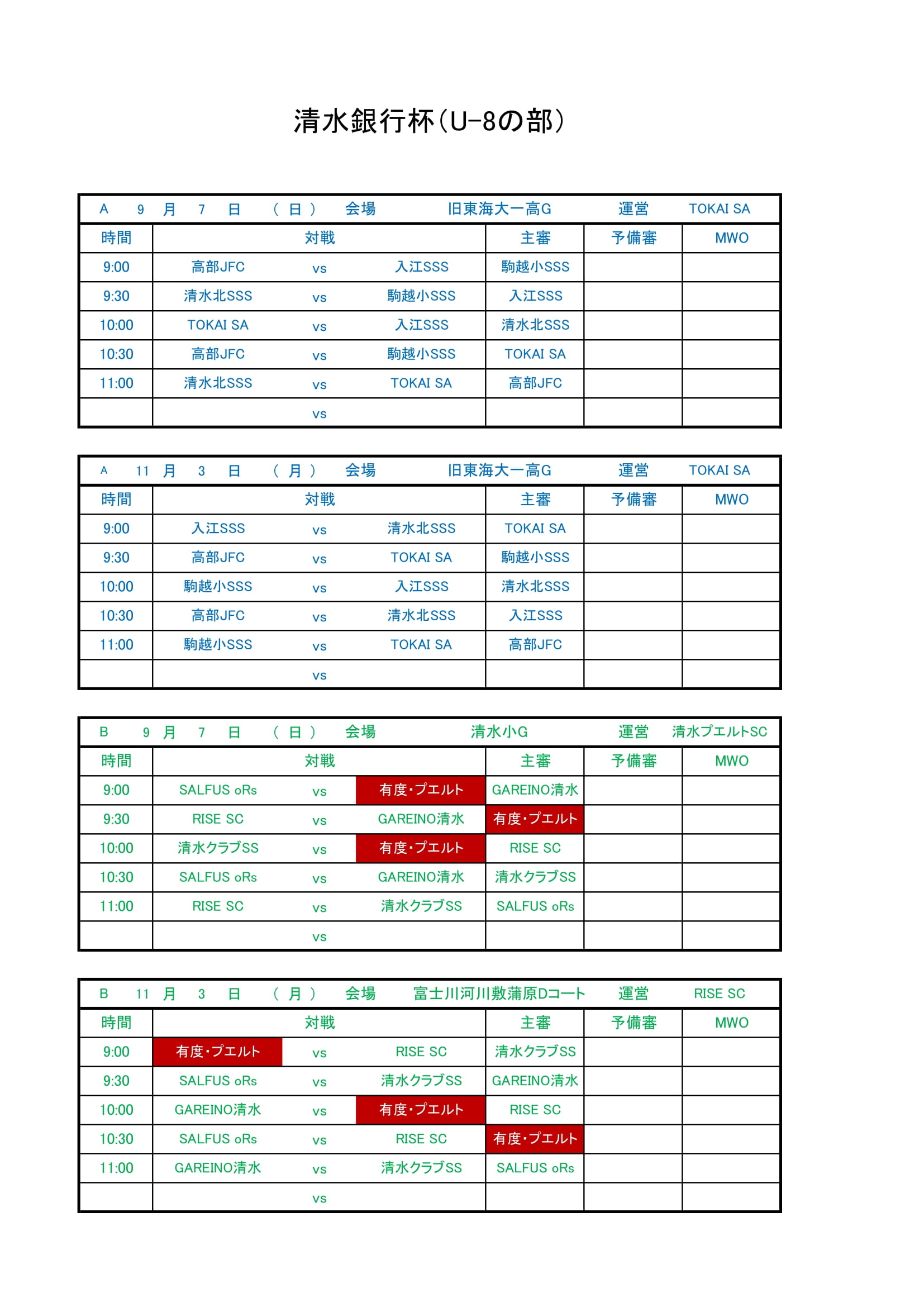 【2年生】11月3日(月祝)清水銀行杯 投稿日 2025年10月21日 更新日 2025年11月4日 著者 udo-fc カテゴリー 二年生 ■11月3日(月祝) 会場>富士川河川敷Dコート 集合>7:30(有度一正門P) 解散>11:50頃 ********** 以下の返信を10月30日(木)15:00までにjimukyoku@udofc.comへ返信願います。 ********** 選手氏名 出欠(可・不可) 配車(可・不可) ①配車可の場合は以下のついても回答をお願いいたします。 ・乗車可能人数( )名 ・配車にならなかった場合 ❶同乗希望 ➋いかない