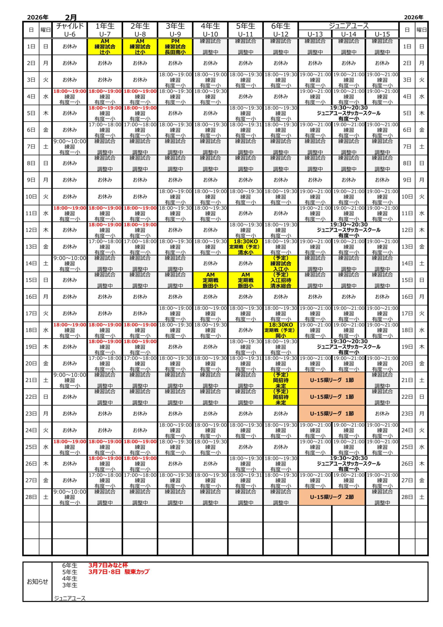 2026年2月 予定スケジュール(1/4更新)