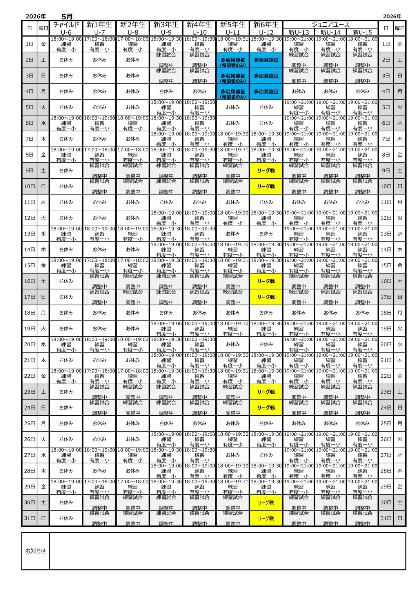 2026年5月 予定スケジュール(3/6更新)