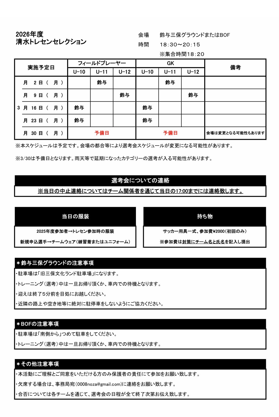 清水トレセンセレクション予定スケジュール