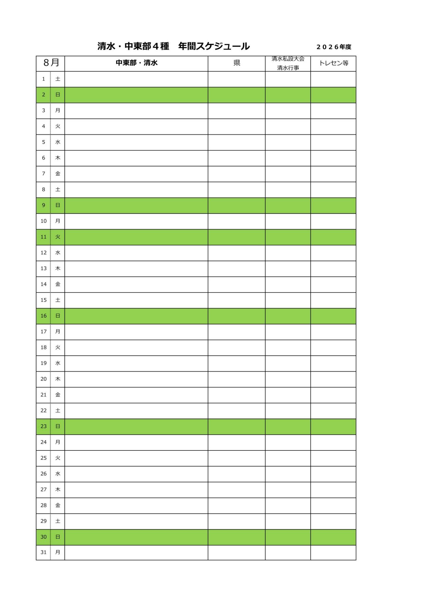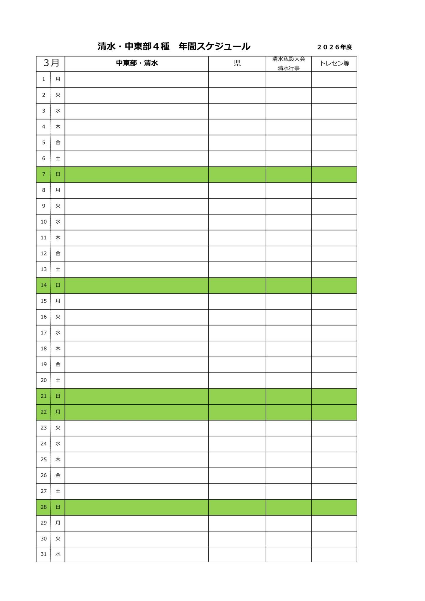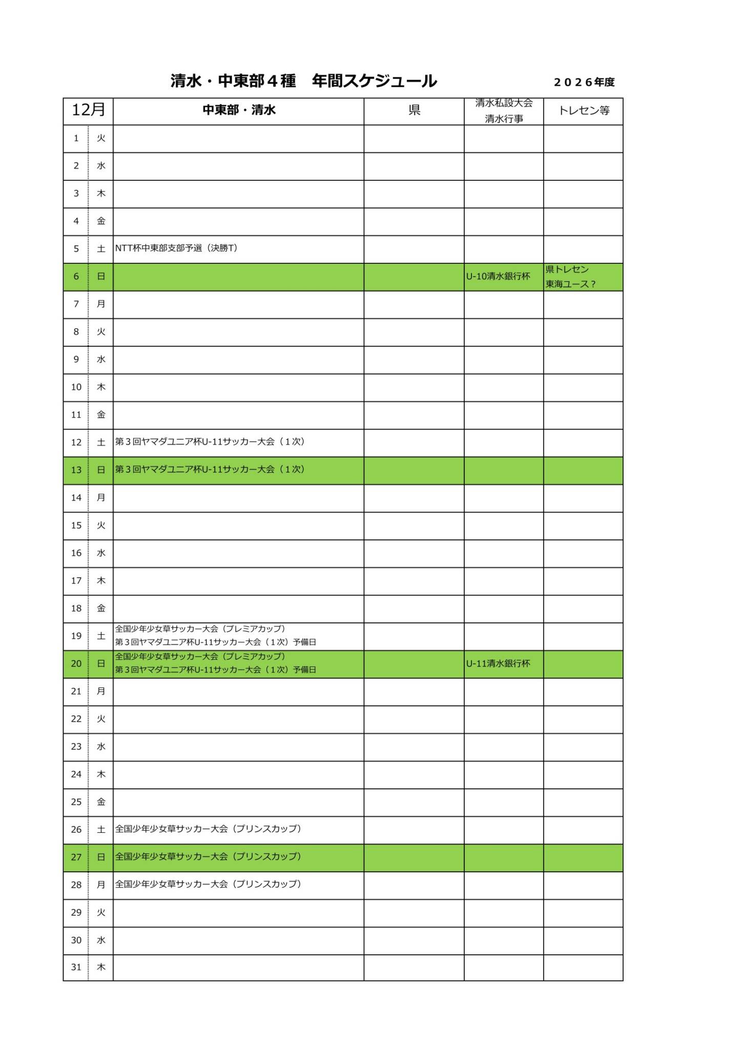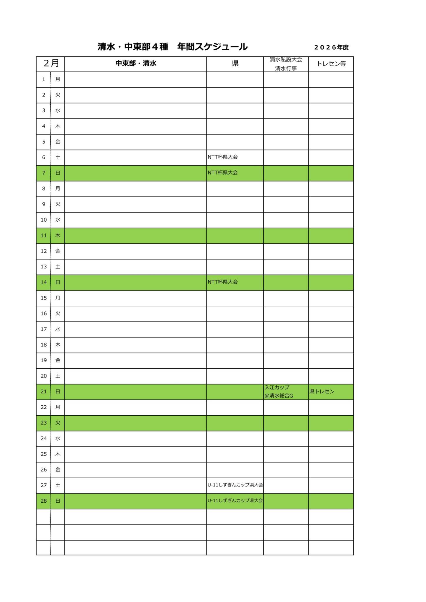 2026年度清水・中東部4種スケジュール(予定)