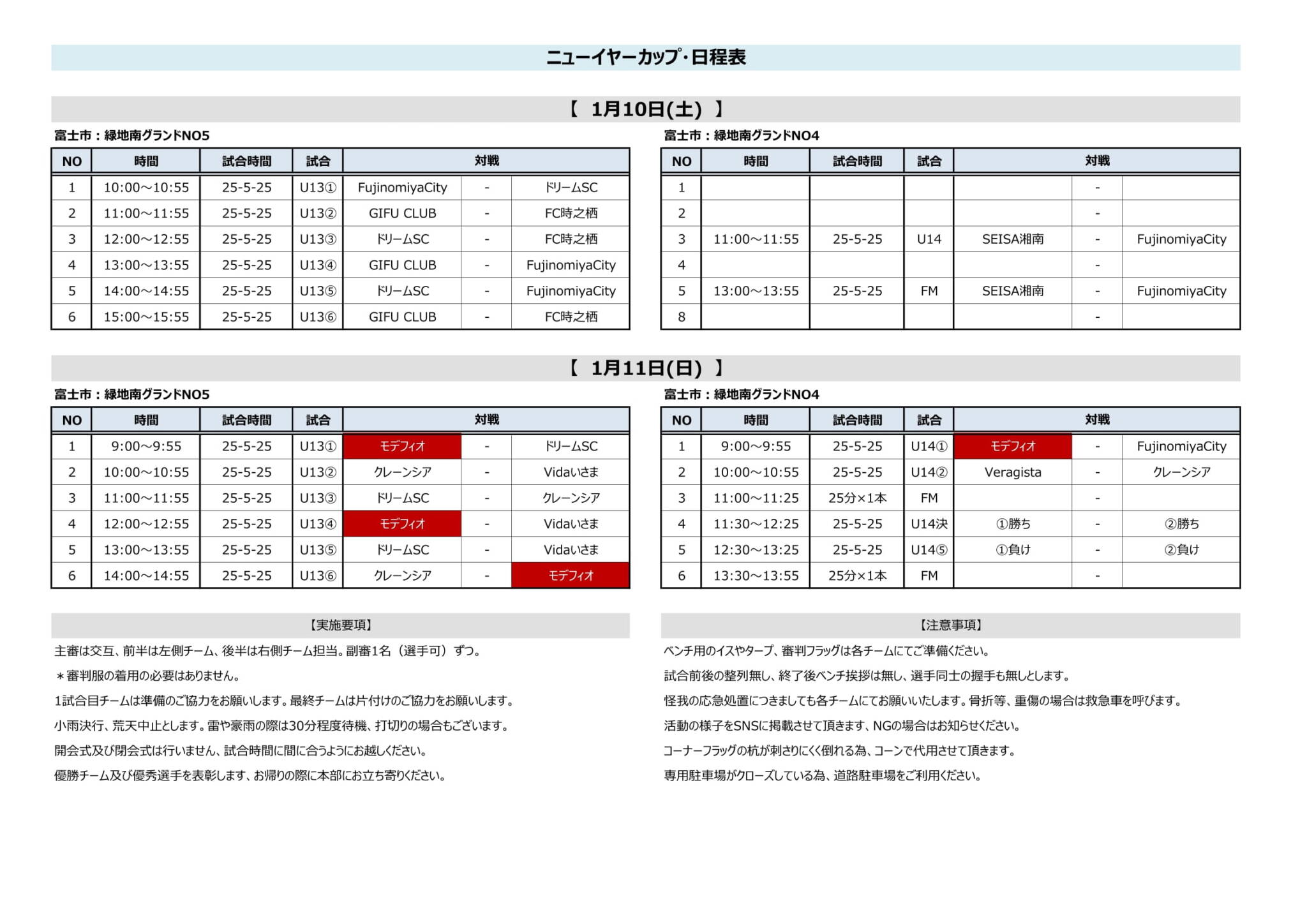 【ジュニアユース】1月11日(日)練習試合