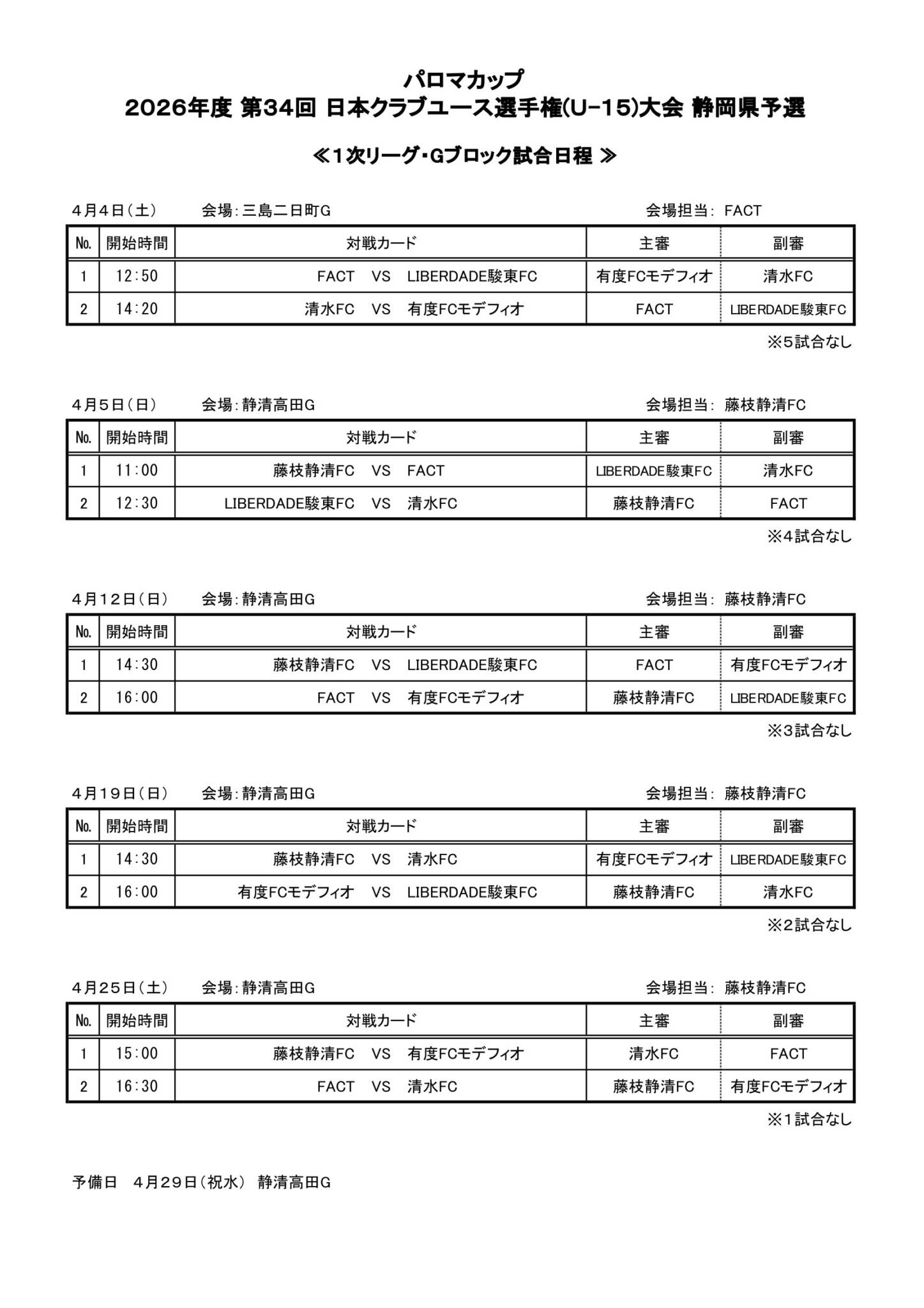 【ジュニアユース】2026年度 第34回 日本クラブユース選手権(U15)大会 静岡県予選