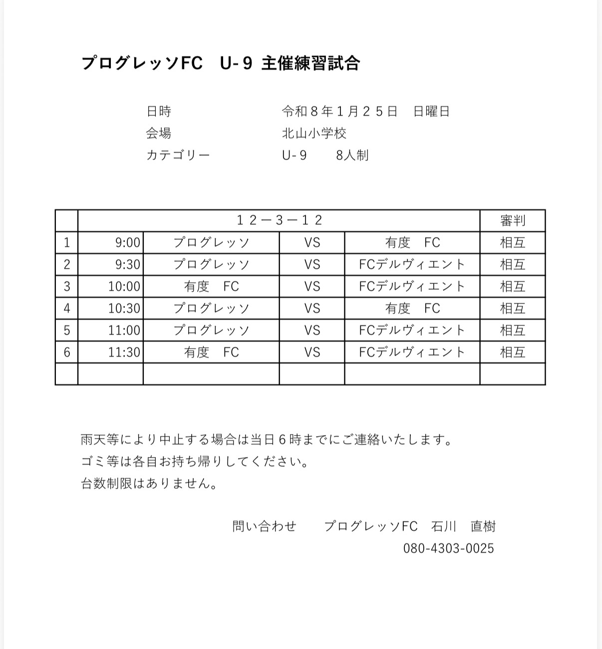 スケジュールのお知らせ